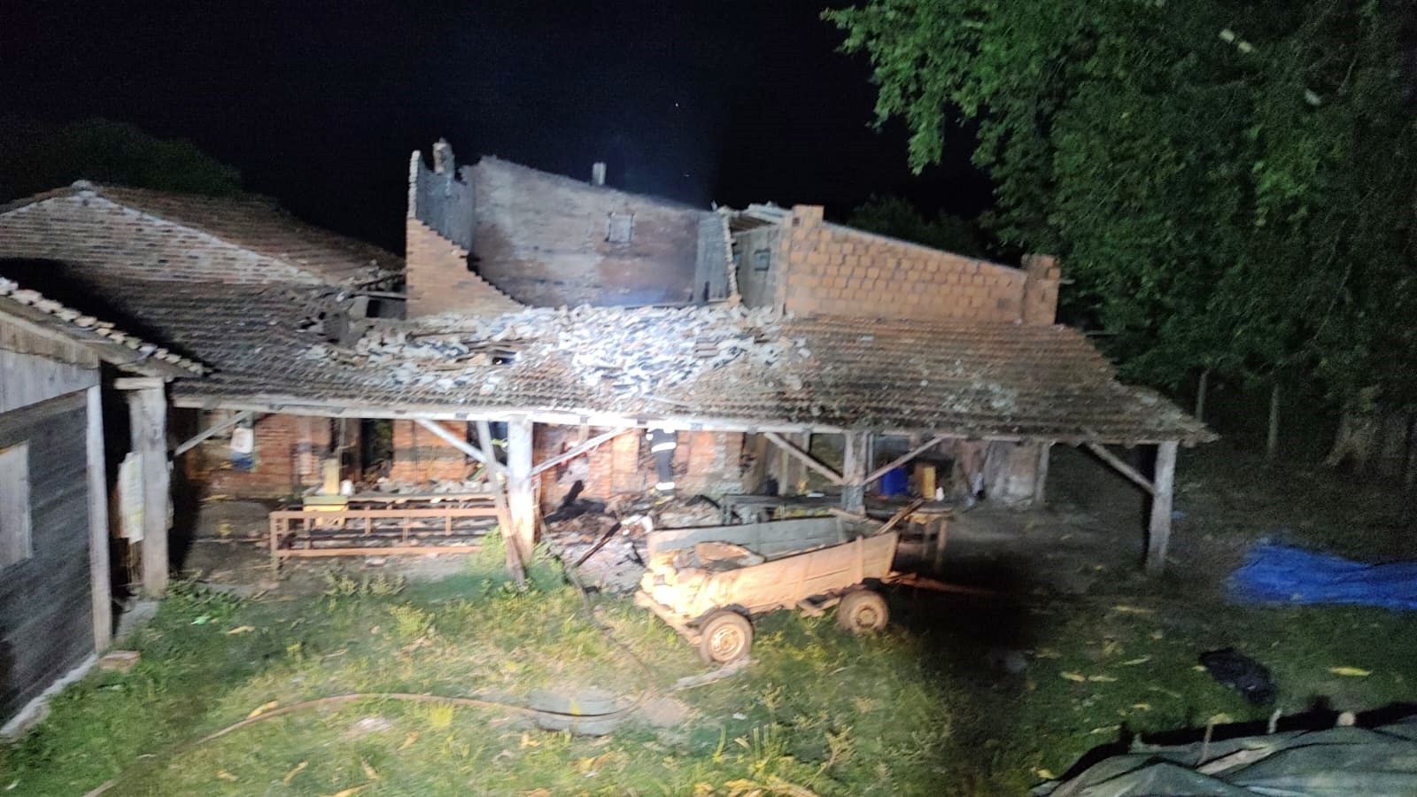 A estufa e o produto tiveram perda total, mas felizmente ninguém ficou ferido.