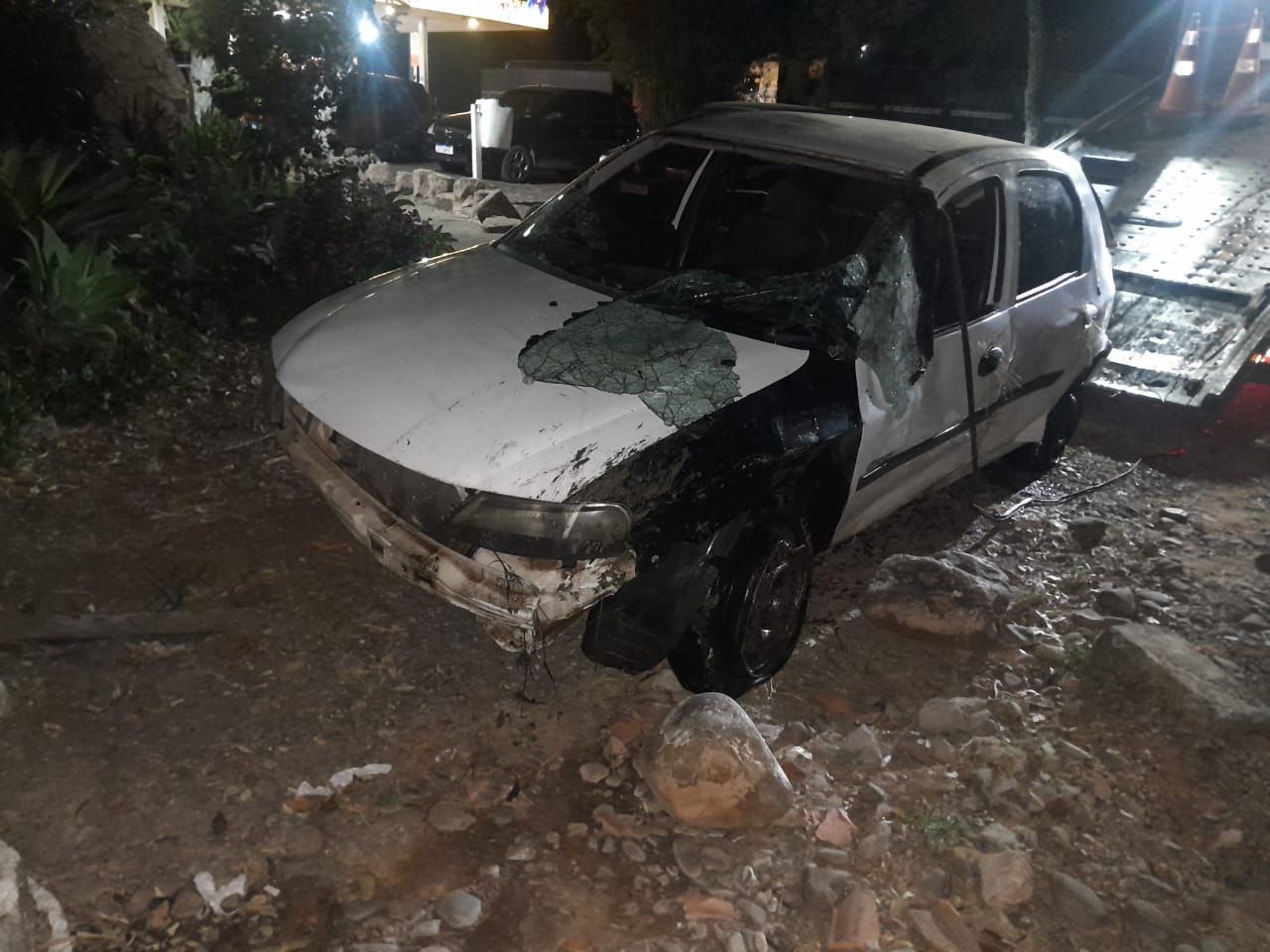 Para a ocorrência, foi deslocada uma viatura de resgate, com 02 bombeiros voluntários, além de uma viatura ABT, utilizada para iluminação do local, apoio na sinalização da via e auxílio na retirada do veículo.