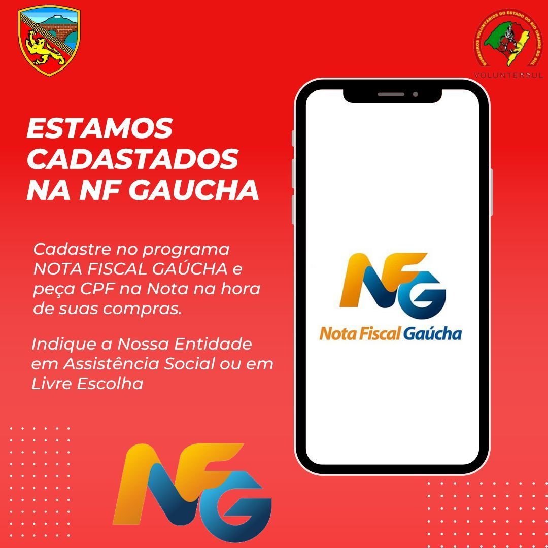 Você sabia que, ao se cadastrar na Nota Fiscal Gaúcha, é possível ajudar diretamente os Bombeiros Voluntários de Candelária, sem nenhum custo adicional?