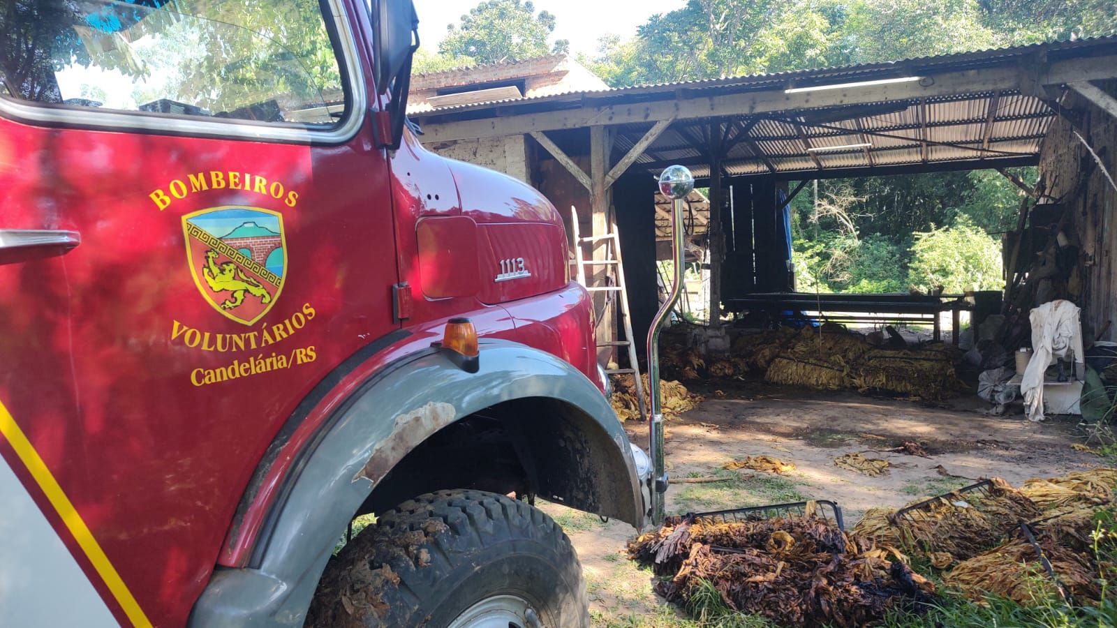 Na manhã desta Segunda-Feira, 25 de novembro, os *Bombeiros Voluntários de Candelária* foram acionados para atender um sinistro em uma **estufa elétrica de tabaco** na localidade de **Palmeira**.