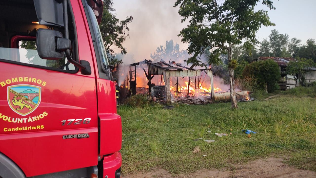 Os Bombeiros Voluntários de Candelária foram acionados às 19h20 para atender um incêndio residencial ocorrido às margens da RSC-287.